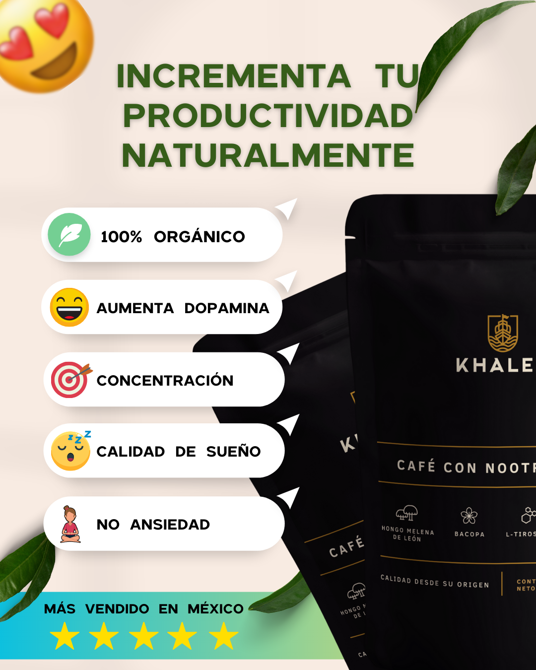 Café Khaley. Café con nootropicos para mejorar la capacidad cognitiva.